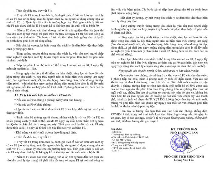 Văn bản cũng hướng dẫn xử lý các tình huống khi xuất hiện từ 2 ca F0 trở lên; xuất hiện thêm các ca F0 mới trong vùng phong tỏa; khu cách ly…