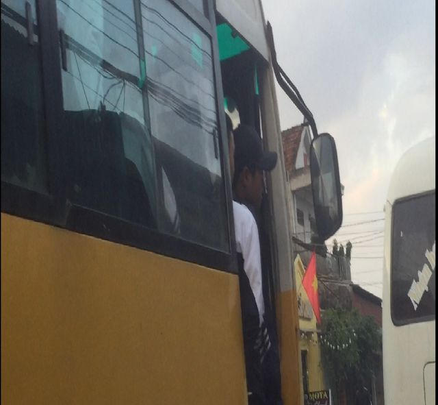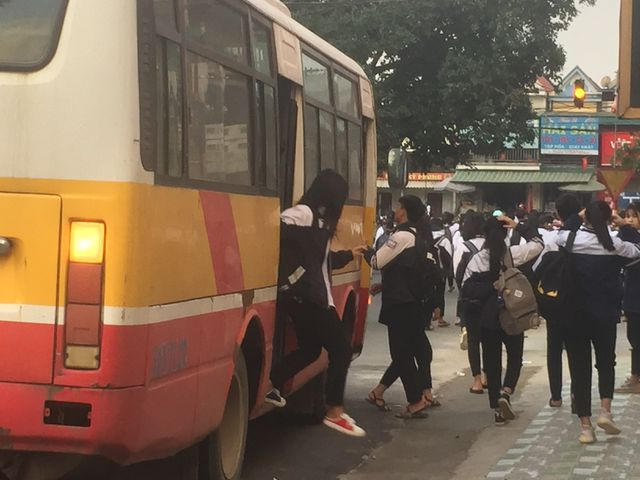 Thậm chí không còn chỗ, nhiều học sinh phải đứng sát mép cửa xe như thế này
