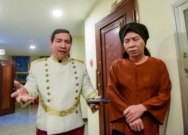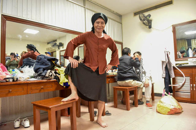 “Cô Đẩu” Công Lý hoá thành bà già Bắc Bộ với áo nâu, váy đụp, khăn mỏ quạ, chân đất… nhưng vẫn tinh nghịch vui đùa với các bạn diễn. Đặc biệt, "Táo" Tự Long đã có màn "bóp cổ" nghệ sĩ Quang Thắng khiến mọi người bật cười nghiêng ngả. Không khí căng thẳng vì thế mà có phần dịu lắng phần nào.
