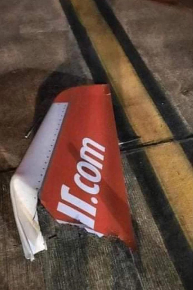 Một phần cánh máy bay rơi xuống đường băng (Ảnh: CTV).