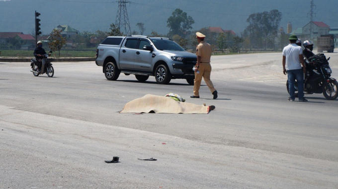 Tại hiện trường, chiếc xe máy bị kéo lê khoảng hơn 20 mét, nằm gọn dưới gầm xe tải, biến dạng hoàn toàn, nhiều mảnh vỡ bay tung tóe trên mặt đường. Sau khi xảy ra tai nạn, tài xế chiếc xe tải đã rời khỏi hiện trường.