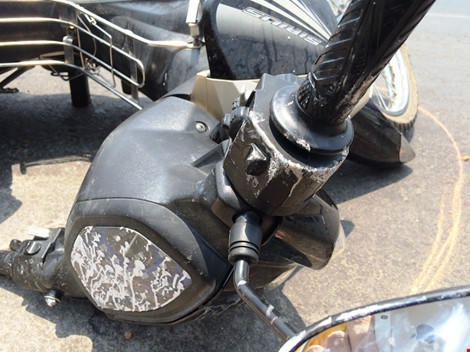 Tại hiện trường, chiếc xe máy của hai cô gái nằm giữa đường, cạnh đó là đôi găng tay bị cháy sém, chất lỏng cũng làm gỉ sét một số bộ phận của chiếc xe máy. Nhiều vật dụng khác như trang phục, túi xách, mũ bảo hiểm cũng bị cháy sém.