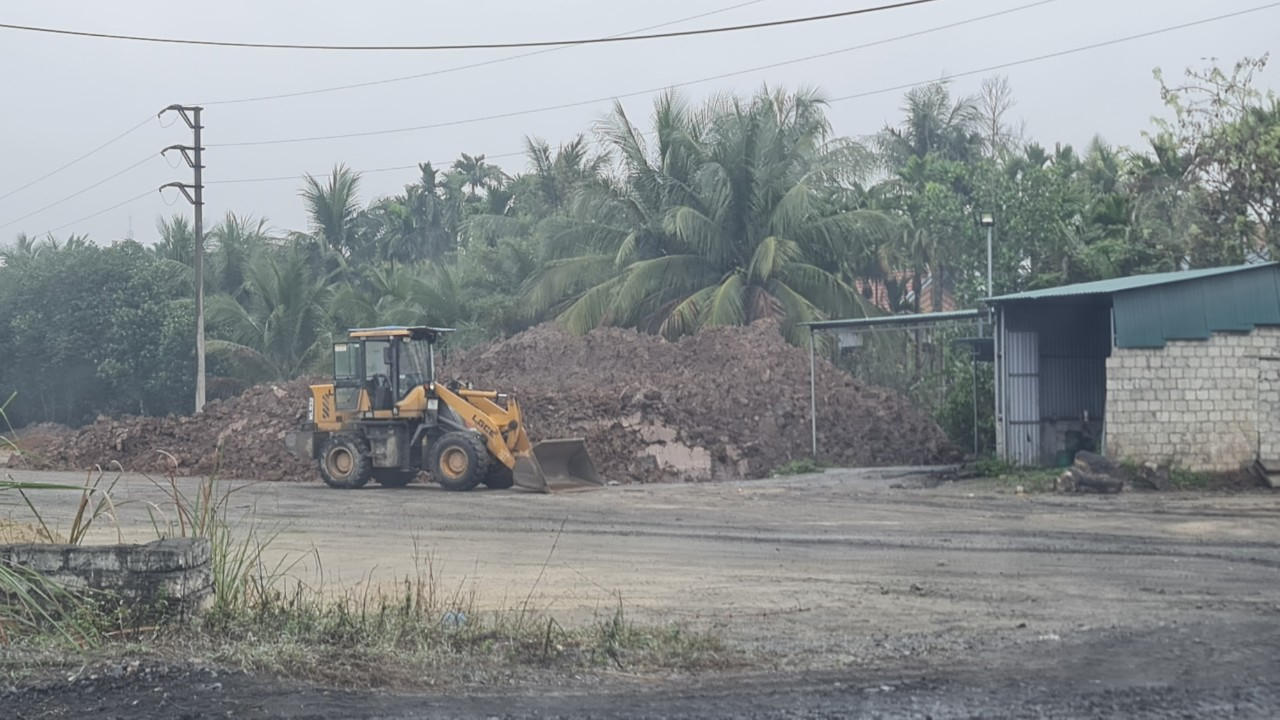 Một người dân sống ngay sát khu vực bãi tập kết đất cho hay: “Người đứng lên quản lý hoạt động bốc xúc đất màu ở ruộng là của ông B, người sống ở làng. Người này cho máy móc đào bới đất ruộng sau cho vận chuyển về bến bãi gần bờ đê sông ở thôn Bạch Đằng để tập kết, ai mua lại múc đem đi bán.
