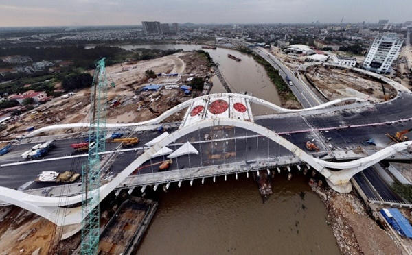 Hiện nay dự án đã hoàn thành toàn bộ phần vòm thép, giằng vòm, lắp dựng dầm thép, cáp treo dầm, làm mặt cầu; đang tiếp tục thi công các hạng mục: Trải thảm mặt cầu, bổ sung bờ bo, lắp đặt lan can, đặt dải phân cách, điện chiếu sáng và tổ chức hoàn thiện đường dẫn đầu cầu.