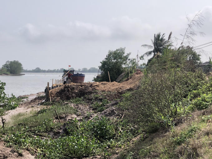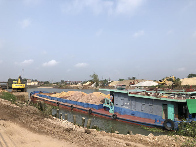Ghi nhận của PV Báo Pháp luật Việt Nam (PLVN) vào ngày 12/3 cho thấy, hoạt động san lấp được tiến hành rầm rộ. Không chỉ vậy, 3 tàu chở đầy đất đá sẵn sàng tập kết trên nhánh sông Văn Úc. Ngay trên hành lang bảo vệ cống Cổ Tiểu có chiều rộng 50m, máy xúc hiệu Komatsu tiến hành xúc đất đá từ dưới tàu lên bờ để phục vụ hoạt động san lấp. Ngay cạnh đó, hàng chục công nhân đang tiến hành lắp dựng với hàng loạt hạng mục kiên cố bằng sắt thép. Người dân địa phương cho biết, nếu nhanh chóng, chỉ trong vài ngày tới, một trạm trộn bê tông sẽ hoàn chỉnh. Trên nhánh sông Văn Úc đã bị đóng cọc, 2 mố cầu lấn sông với diện tích vài chục mét vuông cũng nhanh chóng được hoàn thiện.