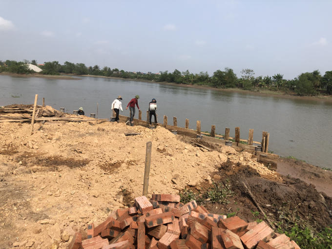 Mặc dù chưa được cơ quan chức năng cấp phép nhưng một số cá nhân đã ngang nhiên san lấp mặt bằng, dựng mố cầu và thậm chí thi công công trình bằng sắt thép kiên cố trong phạm vi bảo vệ công trình thủy lợi kênh trước cống Cổ Tiểu, xã Đoàn Xá, huyện Kiến Thụy.