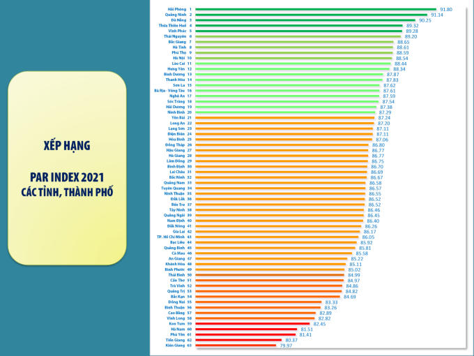 Năm 2021, bên cạnh kết quả cao trên bảng xếp hạng chỉ số Par Index, PCI của Hải Phòng xếp thứ 02/63 tỉnh, thành phố (tăng 05 bậc so với năm 2020).