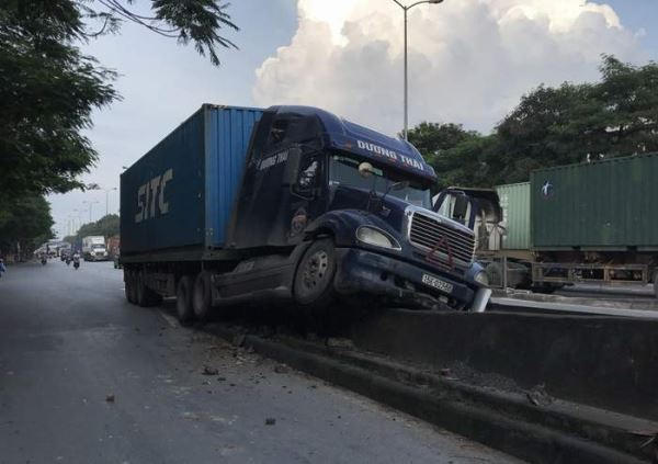 | Sáng ngày 31/8/18 xe đầu kéo mang BKS 16M7637 đã đâm vào mấu Cầu Vượt Lạch Tray hướng Hà Nội về Cảng Hải Phòng. |