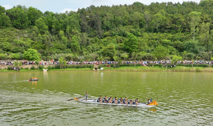 Đông đảo khán giả đến cổ vũ cho các đội đua thuyền rồng.