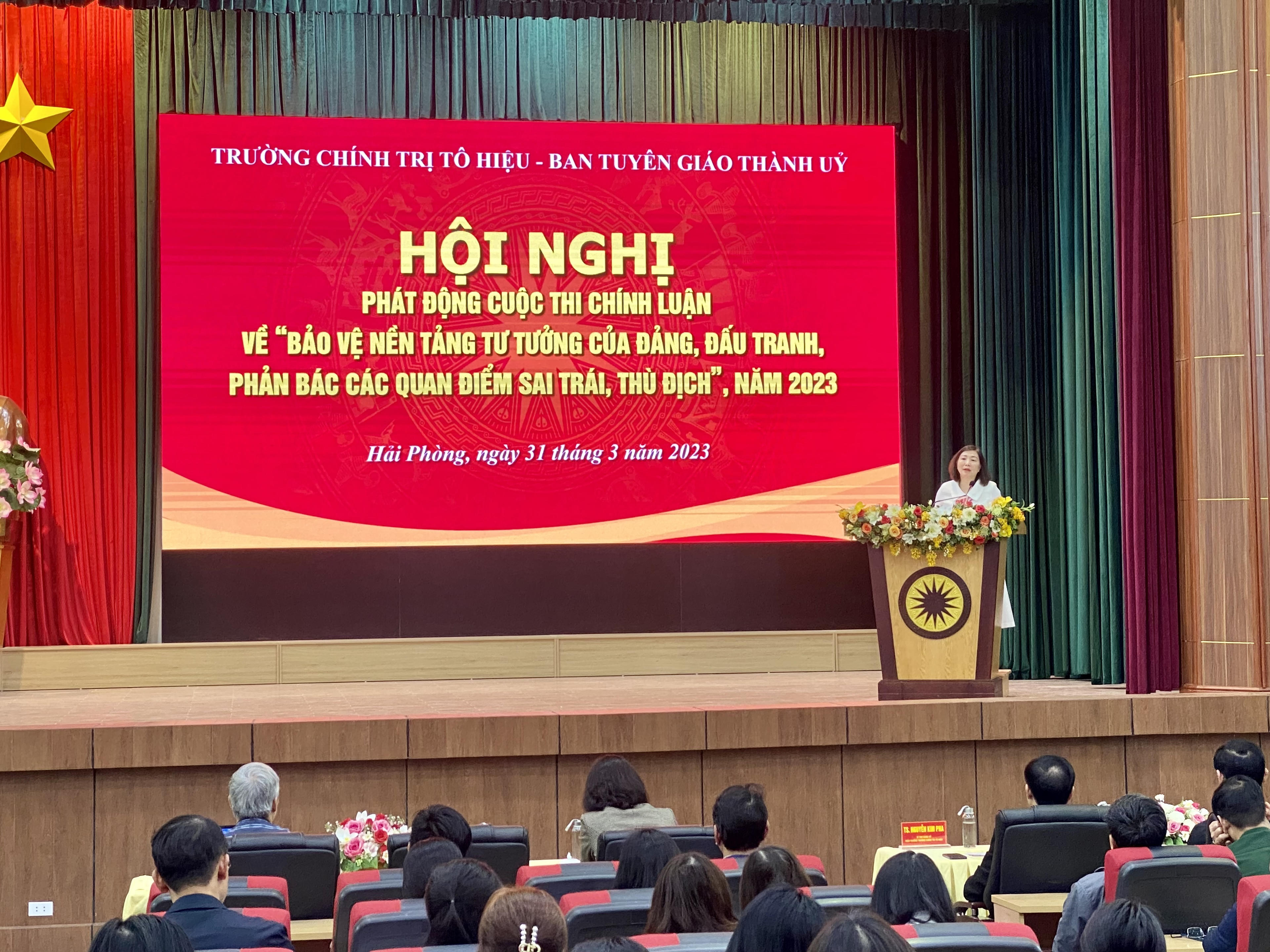 Sáng nay (31/3), Trường Chính trị Tô Hiệu và Ban Tuyên giáo Thành ủy Hải Phòng đã tổ chức Hội nghị phát động cuộc thi chính luận về “Bảo vệ nền tảng tư tưởng của Đảng, đấu tranh phản bác các quan điểm sai trái, thù địch” năm 2023.