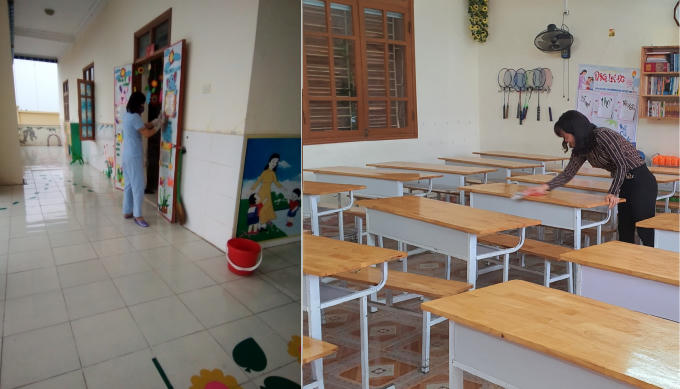 Phòng học được niêm phong sau khi vệ sinh sạch sẽ