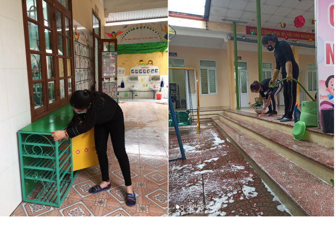 Ngoài việc nhắc nhở cán bộ, giáo viên, nhân viên, học sinh thực hiện nghiêm các biện pháp về phòng, chống dịch bệnh Covid-19 theo đúng tinh thần chỉ đạo của các cấp; đặc biệt thực hiện nghiêm thông điệp “5K” của Bộ Y tế, tất cả các trường học đều trang bị thêm nước rửa tay khô và khẩu trang các loại.