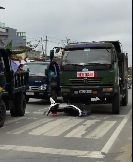 Bất ngờ, xe tải tiến về phía trước, đâm thẳng vào xe máy của lực lượng CSGT chặn ở đầu, khiến một cảnh sát trật tự phải nhảy lên bám vào gương xe. Chiếc xe tải bỏ chạy kéo lê xe máy dưới mặt đường, khiến xe máy bị hư hỏng nặng.