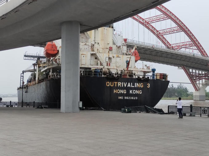 Được biết, tàu hàng Outrivaling 3 có trọng tải 12 nghìn tấn, quốc tịch Hồng Kông. Tàu hàng đang di chuyển thì mất lái đâm vào gầm lan can dưới khuôn viên của cầu Hoàng Văn Thụ, tàu mắc kẹt lại.
