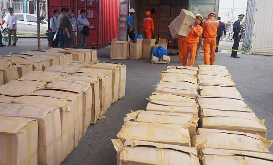 Trước đó, ngày 2/4/2017, lực lượng hải quan phát hiện, bắt giữ hơn 3 tấn lá khát được đóng trong container số TRIU8848304, vận chuyển trên tàu Spirit of Manila nhập cảnh cảng Nam Hải Đình Vũ (Hải Phòng).