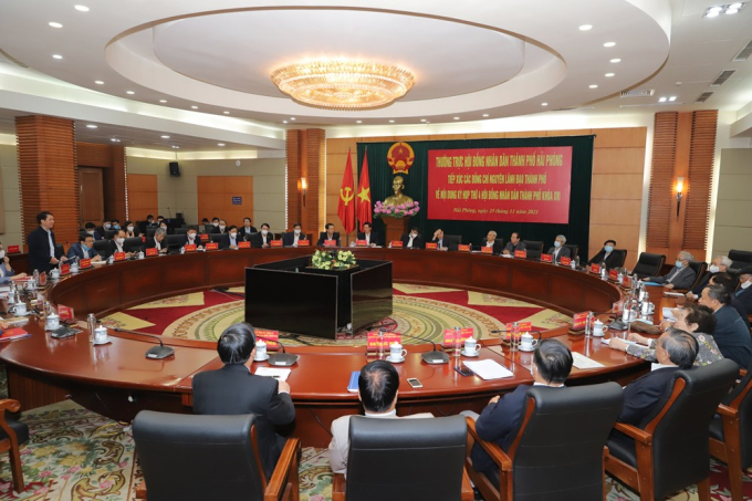 Ngày 25/11, Chủ tịch HĐND TP Hải Phòng Phạm Văn Lập chủ trì buổi tiếp xúc với các đại biểu nguyên là lãnh đạo chủ chốt của TP để lấy ý kiến tham gia vào nội dung kỳ họp thứ 4 HĐND TP khóa XVI, nhiệm kỳ 2021 - 2026.