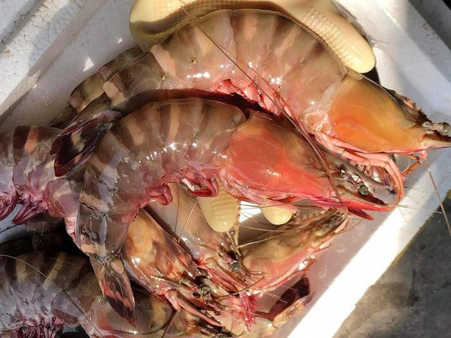 Thậm chí theo người bán, đây là loại tôm sú bố mẹ hay còn gọi là tôm sú cụ, sống ở vùng khơi xa, được ngư dân đánh bắt trực tiếp nên số lượng không nhiều. Mỗi thuyền đi biển về chỉ đánh được 1-2kg, gom cả chục nhà mới được 15-20kg.
