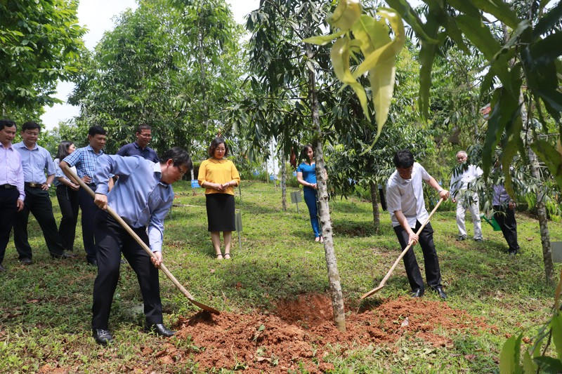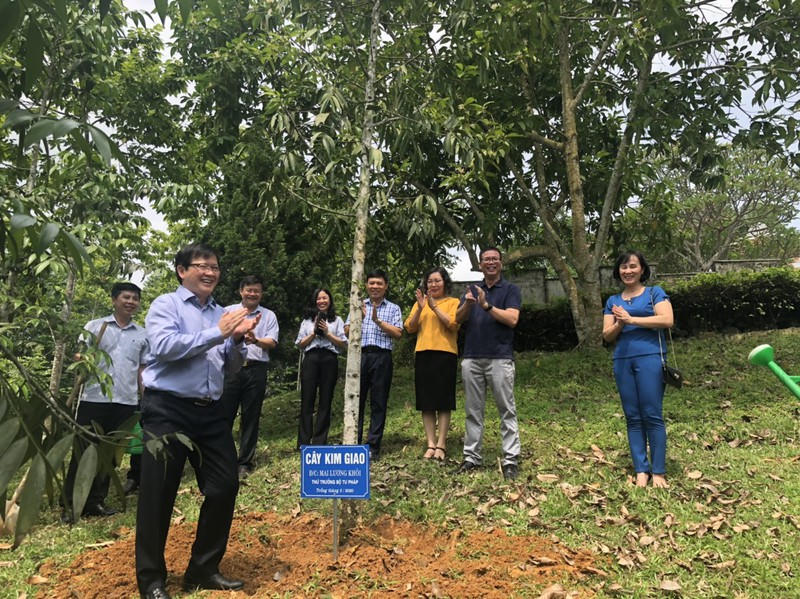 Nhân dịp này, Thứ trưởng Nguyễn Thanh Tịnh và Thứ trưởng Mai Lương Khôi cùng Đoàn công tác đã trồng cây lưu niệm, chung sức tạo thêm màu xanh tươi tốt trong vườn cây của Khu di tích Bộ Tư pháp.