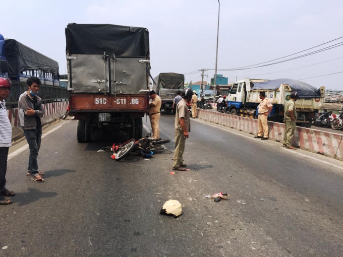 Theo đó vào khoảng thời gian trên, anh Lê Hoàng Vinh (24 tuổi, ngụ Đồng Tháp) chạy xe máy BKS 52Z7 - 5990 chở theo một thanh niên, lưu thông với tốc độ cao trong làn ôtô của quốc lộ 1, hướng từ quận Bình Tân về quận 12 (TP HCM).