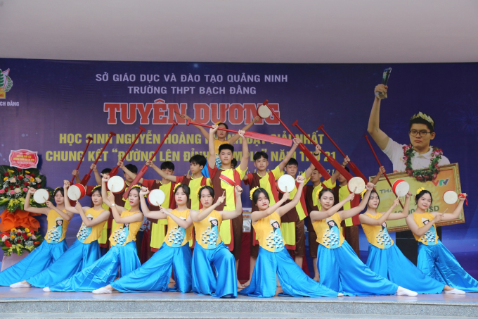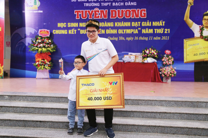 Chiều ngày 16/11, trường THPT Bạch Đằng, thị xã Quảng Yên, tỉnh Quảng Ninh tổ chức lễ đón mừng tuyên dương học sinh Nguyễn Hoàng Khánh - tân quán quân cuộc thi Đường lên đỉnh Olympia lần thứ 21.