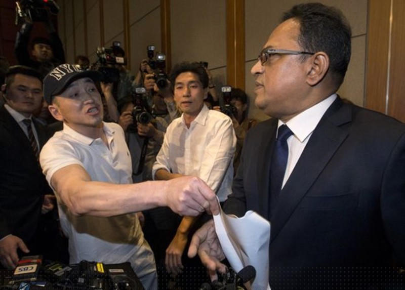 Một người đàn ông tấn công đại diện công ty trong họp báo. Chất diệt khuẩn trong máy tạo ẩm của công ty Oxy-Reckitt Benckiser đã khiến nhiều người tử vong.