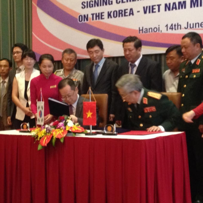 Chiều 14/6, Bộ Quốc phòng Việt Nam và Cơ quan Hợp tác quốc tế Hàn Quốc tại Việt Nam (KOICA) đã tổ chức lễ ký Biên bản thảo luận cho dự án “Việt Nam - Hàn Quốc hợp tác khắc phục hậu quả bom mìn sau chiến tranh”.