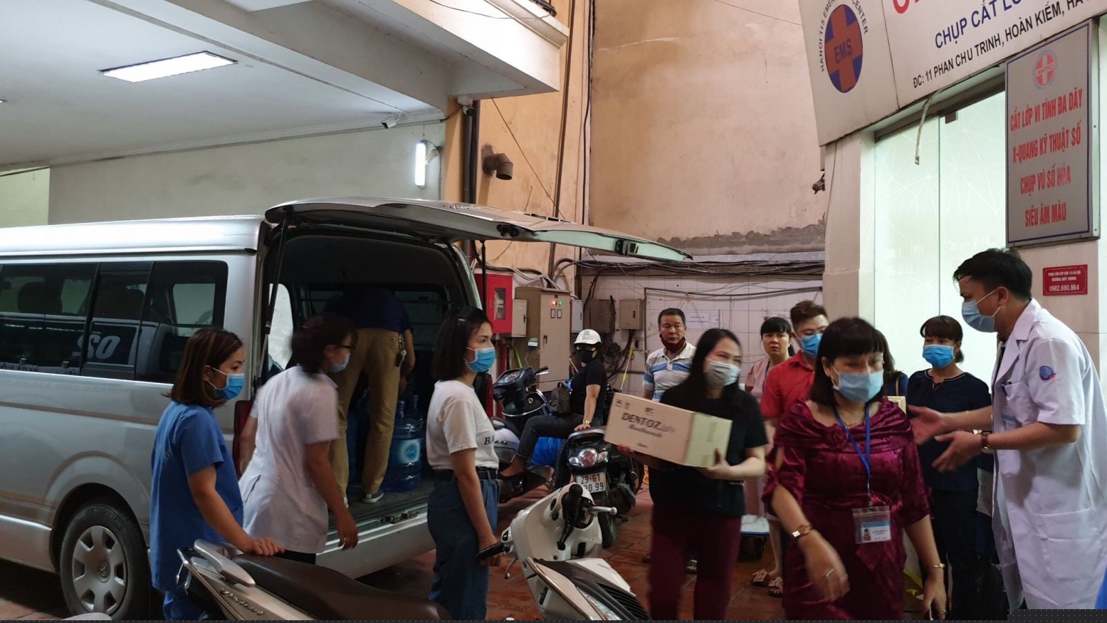 Chia sẻ với sự nguy hiểm, vất của cán bộ nhân viên, y bác sĩ Trung tâm Cấp cứu 115 Hà Nội cùng với sự hạn chế về điều kiện vật chất vì thời gian dịch bệnh kéo dài, Trung tâm Giáo dục chăm sóc sức khỏe cộng đồng Hà Nội đã triển khai chương trình “Chung tay bảo vệ sức khỏe cộng đồng”, trao tặng nước súc miệng Dentoz, nước tinh khiết Clara, thực phẩm dinh dưỡng cùng găng tay y tế cho tập thể cán bộ nhân viên, y bác sĩ tại đây.