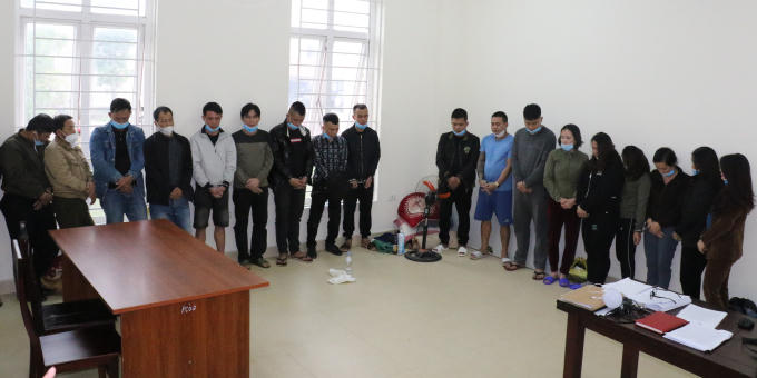 Trong số này, có nhiều đối tượng đã có nhiều tiền án đến từ các huyện Yên Thành, Nghĩa Đàn, Quỳ Hợp, Quỳnh Lưu thuộc tỉnh Nghệ An và một số địa phương thuộc tỉnh Thanh Hóa. Có 6 đối tượng đánh bạc bị bắt là phụ nữ.