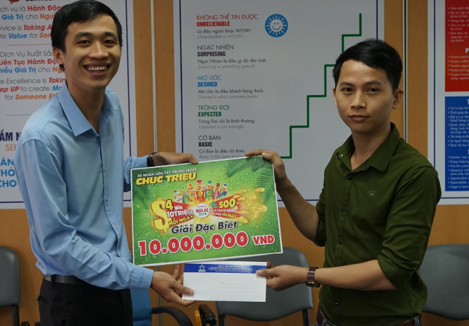 Khách hàng Phạm Xuân Hòa (Quảng Bình) nhận giải thưởng 10 triệu đồng tiền mặt