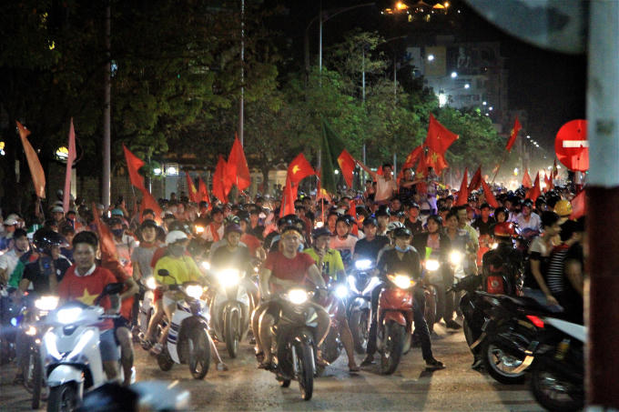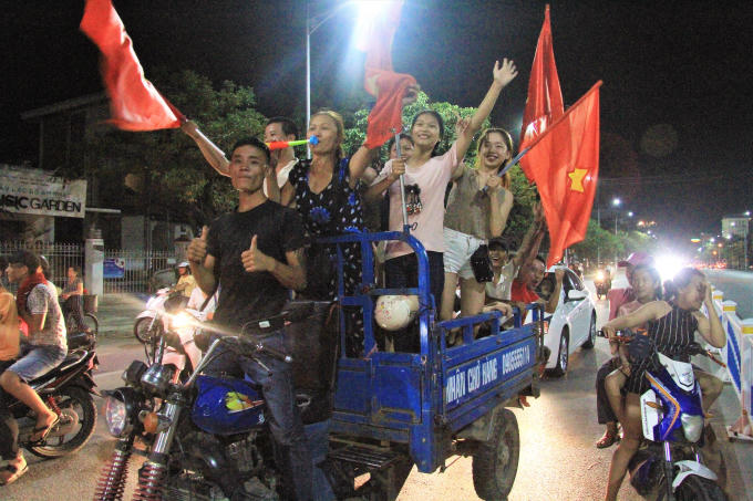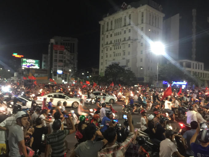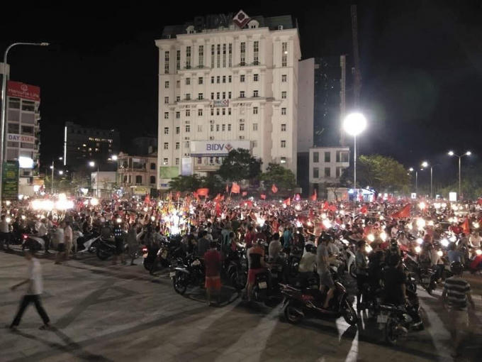 Trước chiến thắng 1-0 của tuyển Olympic Việt Nam với Olympic Syria, hàng chục ngàn người dân xứ Huế đổ ra đường ăn mừng chiến thắng.