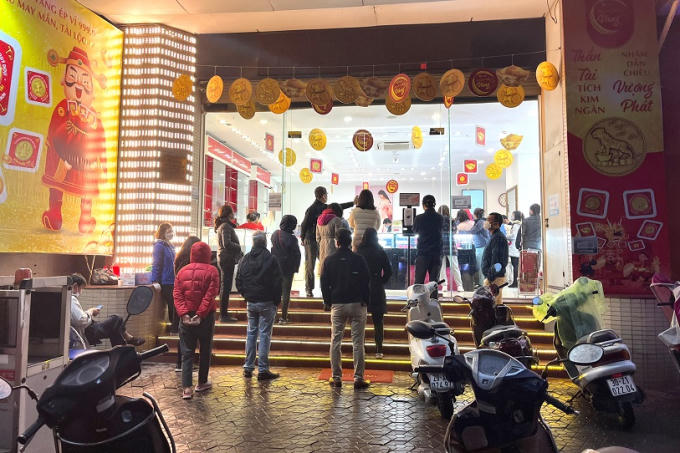 Một số hình ảnh khách hàng có mặt từ sáng sớm tại DOJI Hà Đông để mua vàng ngày Vía Thần Tài.