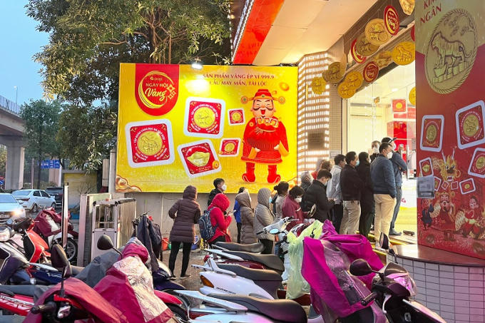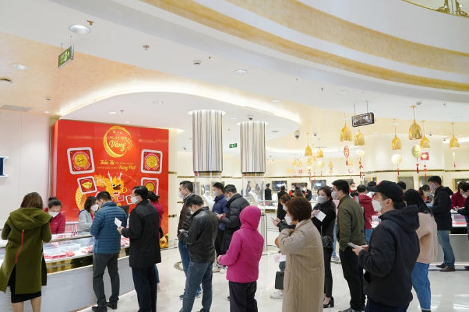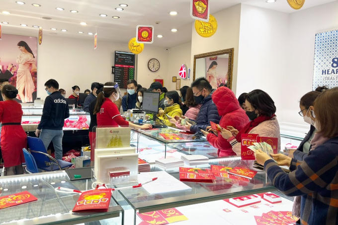 Bất chấp mưa và giá lạnh, khách hàng tấp nập đi mua vàng. Tại các cửa hàng của DOJI, khách hàng không phải xếp hàng quá lâu do công tác phân luồng, tư vấn, giao dịch được chuẩn bị kĩ lưỡng và nhanh chóng. Các cửa hàng DOJI mở cửa từ 6:30 phút.