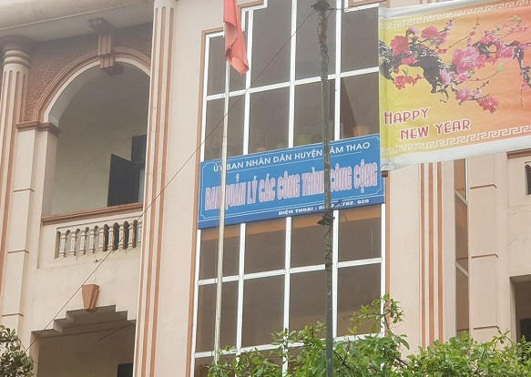 Trụ sở Ban quản lý dự án các công trình công cộng huyện Lâm Thao, đơn vì mời thầu các dự án do UBND huyện Lâm Thao làm chủ đầu tư đều được đấu thầu bằng giấy dạng túi hồ sơ.