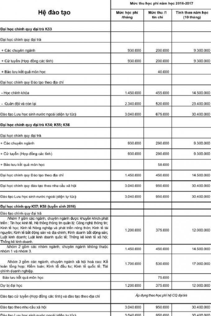Theo như năm nhất của K57 thì bọn em phải trả 355k/1 tín, con số đó đã là không nhỏ. Bọn em vẫn chấp nhận con số đó để vào NEU vì tình yêu với ngôi trường này nhưng với tình hình hiện nay, theo quyết định mới của nhà trường thì học phí lại tiếp tục tăng nhưng không phải tăng với một con số nhỏ nữa mà tăng quá cao so với các trường công lập khác và có khi là tăng cao hơn cả trường dân lập khác. Có những ngành lên tận 450k/1 tín, 530k/1 tín.