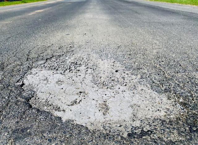 Những vết vá kéo dài hàng chục mét trên tuyến đường tránh quốc lộ 55.