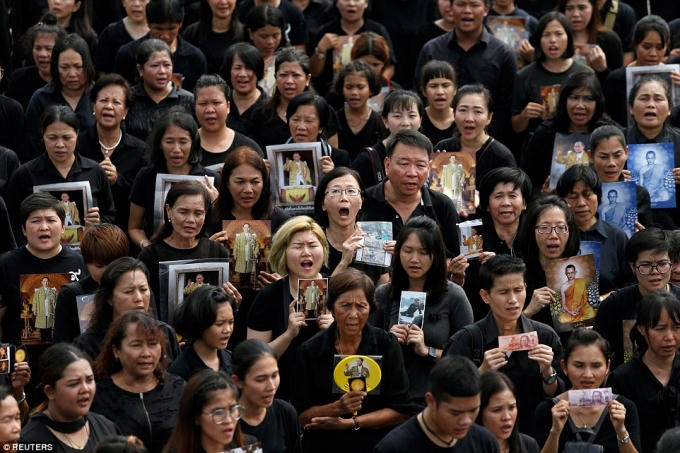 Ngày 22/10, hơn 150.000 người dân Thái Lan đã tập trung trước Cung điện Hoàng gia ở thủ đô Bangkok để cùng hát quốc ca tưởng nhớ nhà vua Bhumibol Adeladej-người vừa qua đời hôm 13/10 sau 7 thập kỷ trị vì.