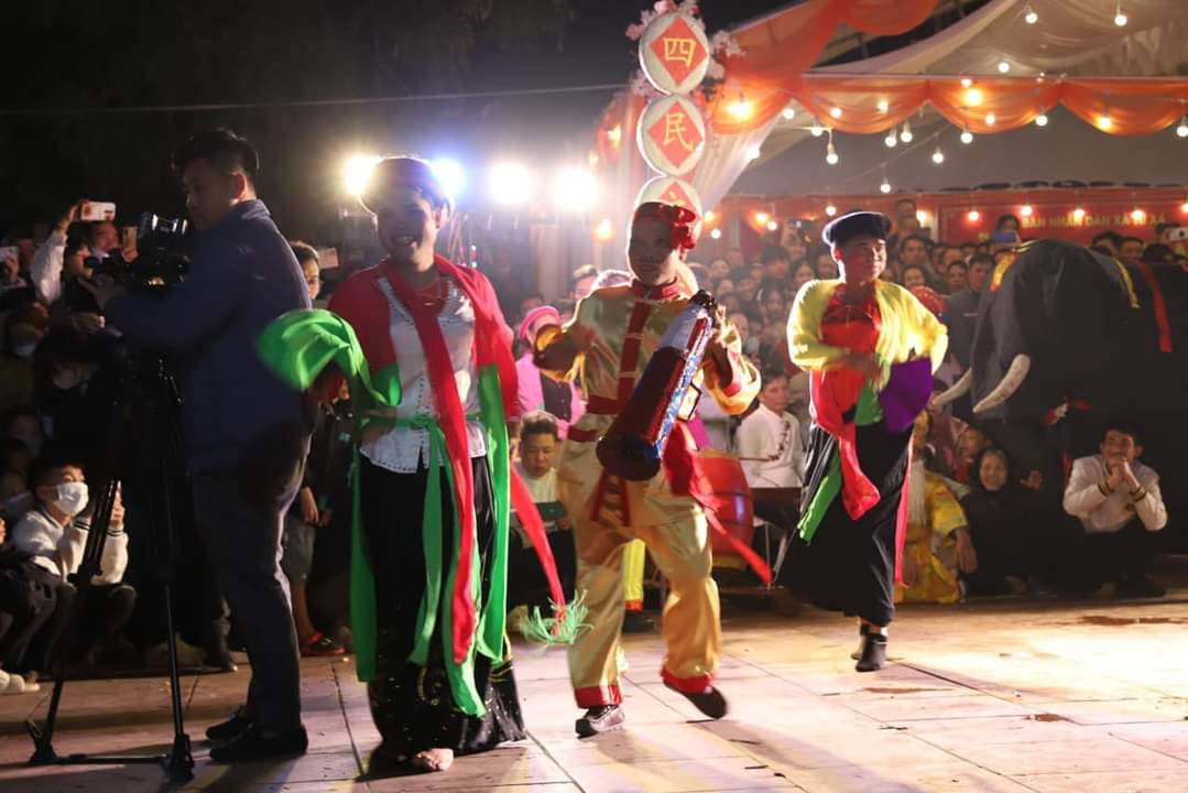 Trước đó, ngay từ tối đã diễn ra nhiều chương trình khắc họa bốn nghề chính trong đời sống (sỹ, nông, công, thương). Lãnh đạo địa phương và người dân cũng đổ về miếu thờ thắp hương cầu may.