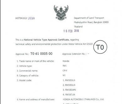Theo thông tin PV nắm được, Giấy chứng nhận kiểu loại ô tô của Honda Việt Nam đã được Cơ quan quản lý giao thông đường bộ của Thái Lan cấp phép vào ngày 16/2/2018. Riêng mẫu xe gây sốt thị trường trong nước thời gian qua là Honda CR-V được ghi rõ xuất xứ hàng hóa, được sản xuất tại nhà máy ô tô Honda Thái Lan với 4 kiểu loại khác nhau.