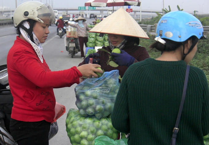 "Hàng rong" bủa vây đầu đường cao tốc Hà Nội - Hải Phòng
