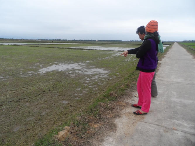 “Gia đình trông chờ vào 6 sào ruộng mà giờ mất trắng hơn 2 sào rồi”, chị Lê Thị Mẫn chia sẻ khi ra thăm đồng. Được biết, các năm trước đây không hề có tình trạng này xảy ra.