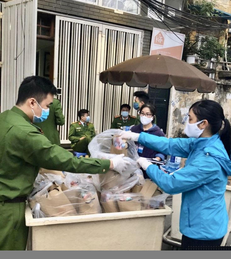 Được biết 250 hộ dân phố Trúc Bạch, Ba Đình, Hà Nội bị cách ly có nhiều khó khăn trong sinh hoạt, cuộc sống. Được sự đồng ý của Ban chỉ đạo phòng chống dịch quận Ba Đình và phường Trúc Bạch, Trung tâm Giáo dục chăm sóc sức khỏe cộng đồng Hà Nội đã không ngại nguy hiểm phối hợp với chùa Kim Ngưu tổ chức cấp phát 250 suất nhu yếu phẩm cho các hộ dân và 50 suất cho cán bộ Ban chỉ đạo phòng chống dịch phường Trúc Bạch.