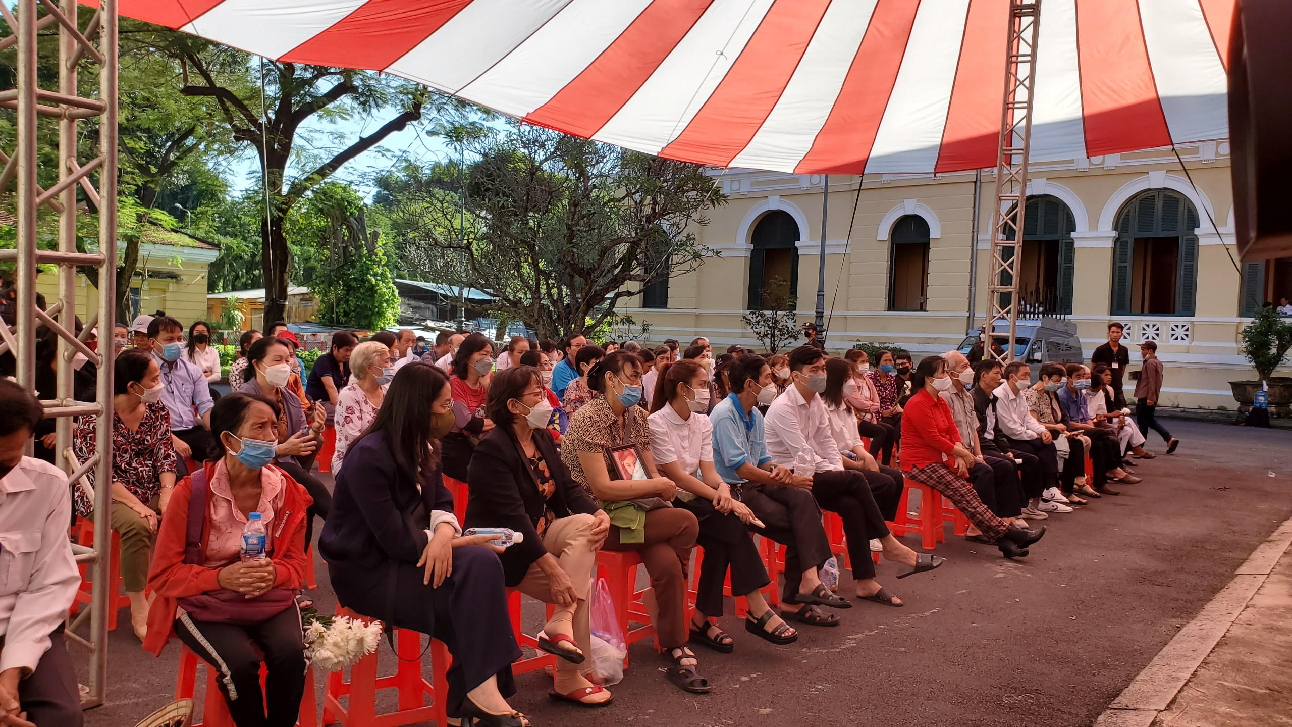 Người thân và người dân theo phiên tòa bên ngoài sân Tòa án Nhân dân TP Hồ Chí Minh xúc động, khóc nức nở khi nghe bản cáo trạng nêu các hành động bạo hành của Trang và Thái với bé V.A.