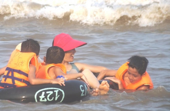 Ông Tuấn cho biết thêm: "Mặc dù nước biển hôm nay đục nhưng du khách vẫn rất thích thú. Đục là do biển động, chứ không phải đục bẩn như nước sông, nước hồ nên cũng chẳng ảnh hưởng gì khi tắm".