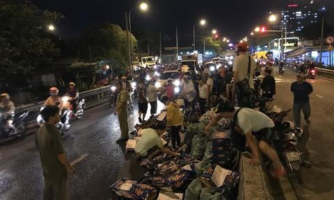 Khi thấy xe tải chở bia bị đổ trên cầu Gò Dưa, rất đông người dân đã đến phụ giúp tài xế canh giữ và thu dọn.