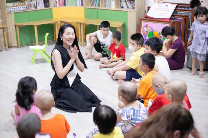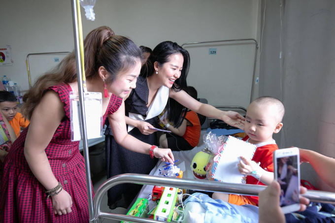 Nữ ca sĩ chia sẻ với VietNamNet: "Phạm Thuỳ Dung và người bạn là nghệ sĩ Violin Đào Hồng Nhung đến trao 43 suất quà và sau đó có buổi hát và chơi cùng các con. Nhìn các bé còn rất nhỏ mà đã phải mang trong mình căn bệnh rất nặng, phải đối mặt với thuốc thang, tiêm truyền, xạ trị, hoá chất... tôi cảm thấy xót xa. Những ngày nằm viện kéo dài với lịch điều trị kín đặc, đối với người lớn đã là điều kinh khủng chứ không phải đối với trẻ nhỏ".
