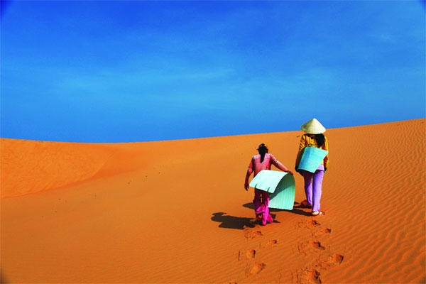 - Ngày 2: đến Đồi Cát Mũi Né, còn gọi là Đồi Cát Bay, các bạn có thể thuê xe dịch vụ đi cũng được (Sing cf, Hạnh cf, xe bus..taxi..). Ở đây có nhiều dịch vụ hấp dẫn như: trượt cát, đua xe jeep trên cát,..