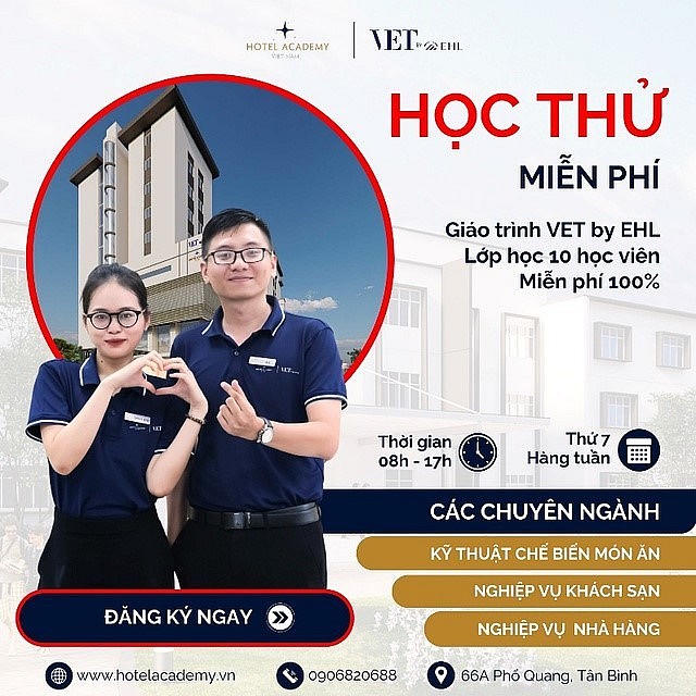 Hiện Hotel Academy Việt Nam đang có chương trình trải nghiệm học thử miễn phí 100% dành cho các sinh viên tương lai. Đây là cơ hội tuyệt vời để trải nghiệm giáo trình và phương pháp giảng dạy đẳng cấp quốc tế và tìm hiểu các chuyên ngành hấp dẫn trong lĩnh vực nhà hàng, khách sạn.
