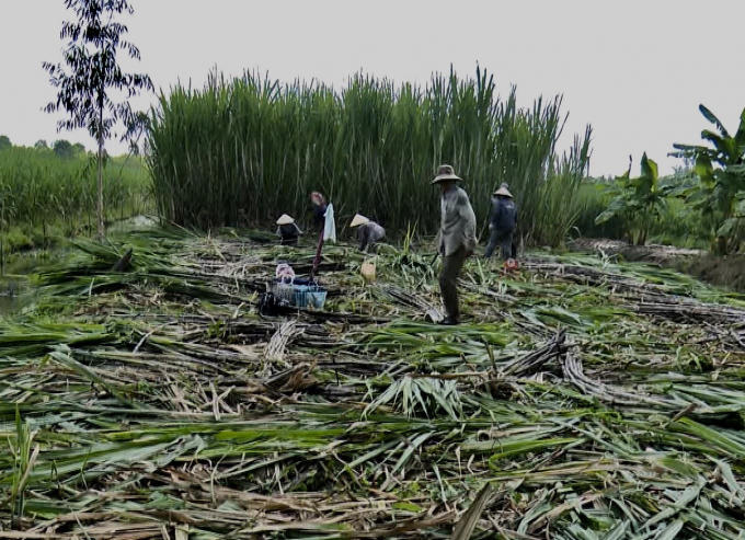 Nông dân thu hoạch mía bán lẻ từng chục.