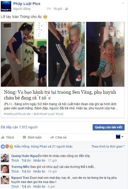 Nhiều độc giả bức xúc lên tiếng phản đối hành động của các cô giáo trong vụ bạo hành trẻ tại trường Sen Vàng mà Pháp luật Plus đã đăng tải.