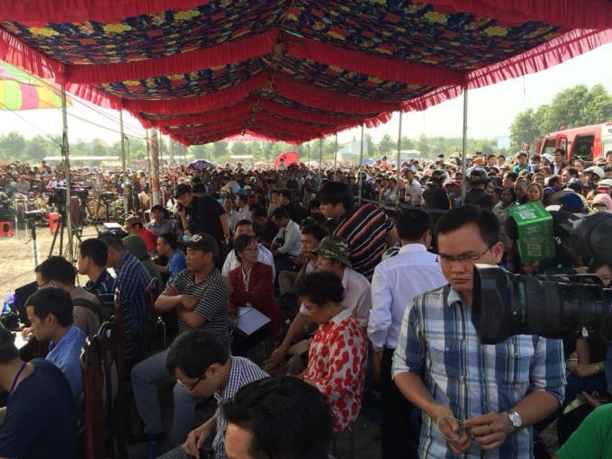 6h sáng, hàng trăm người dân từ các nơi đã đổ về khu vực tổ chức phiên tòa xét xử lưu động các bị cáo trong vụ thảm sát.
